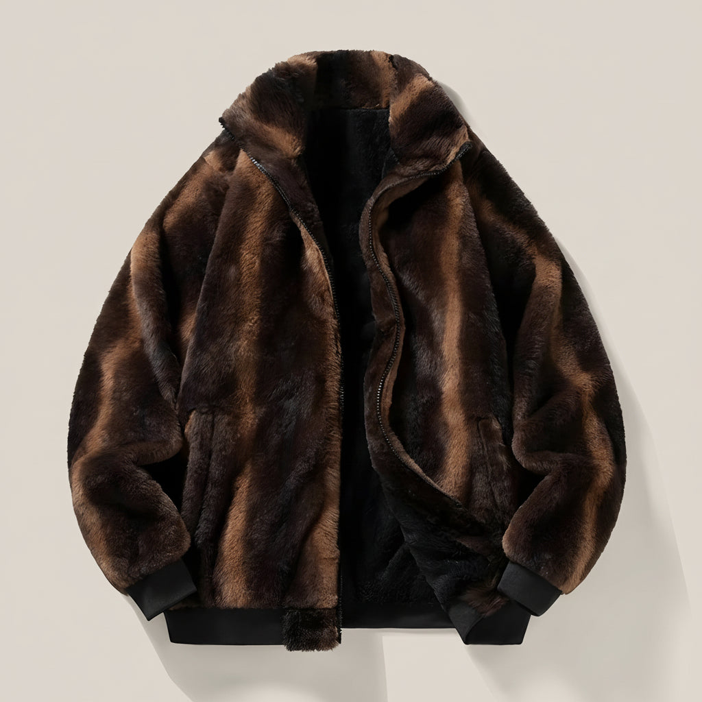 A bold retro statement redefined for modern wardrobes, this faux fur bomber jacket blends plush...